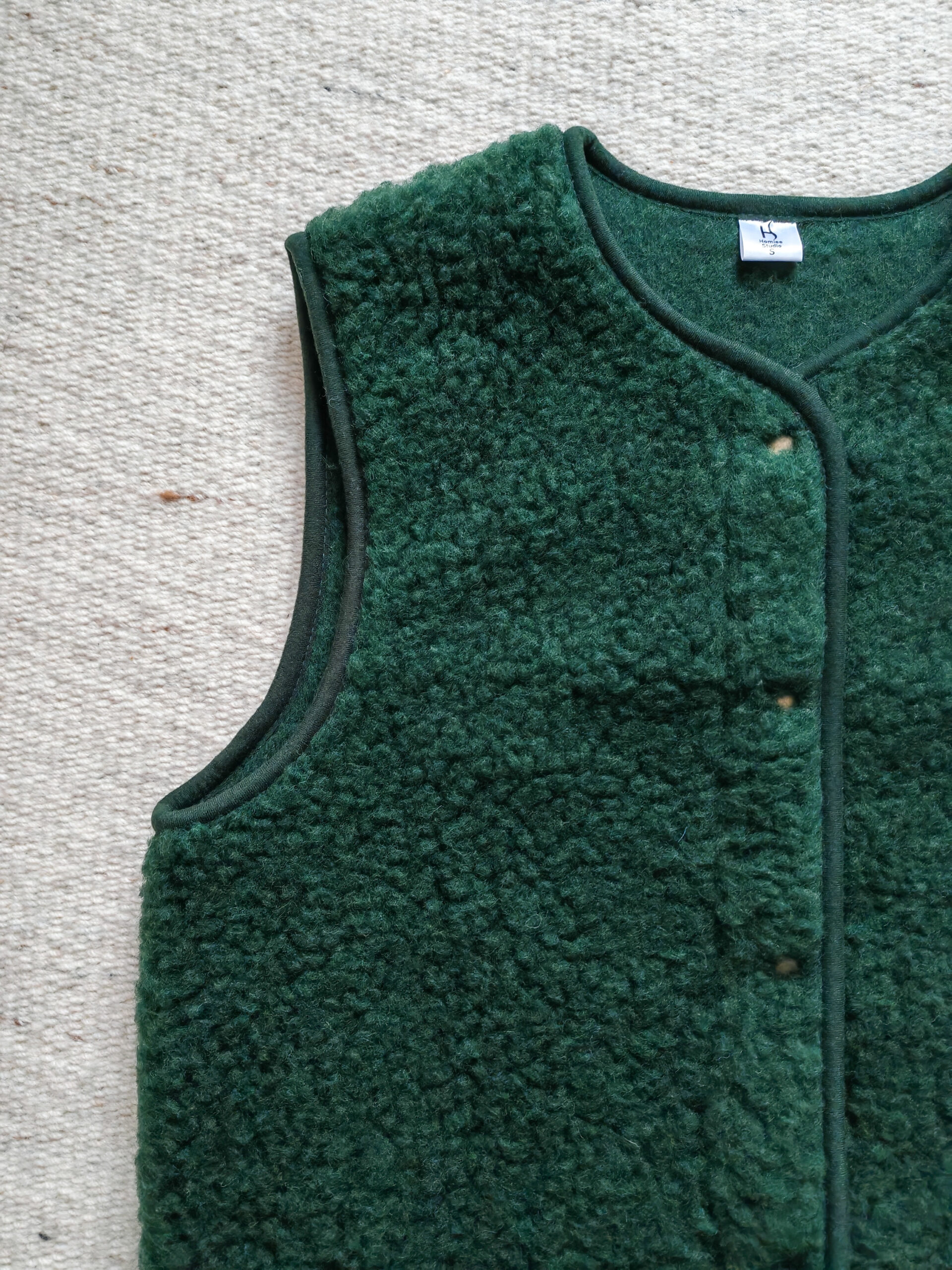 Merino wool gilet HOPE combines natural warmth with minimalist style from HomieeStudio. Made from a wool fleece, it’s the perfect layer for chilly days. Unlined with snap button fastening, the vest is designed for a casual, modern style. Its lightweight construction and natural breathability make it comfortable and versatile, perfect for a variety of outfit.