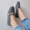 The inner part insulated with wool gives a high sense of comfort. The model is fastened with a toggle, which allows to adjust the instep. The ballerinas are very light and pleasant to the touch. Footwear intended for home use, works great on long cold evenings and more.