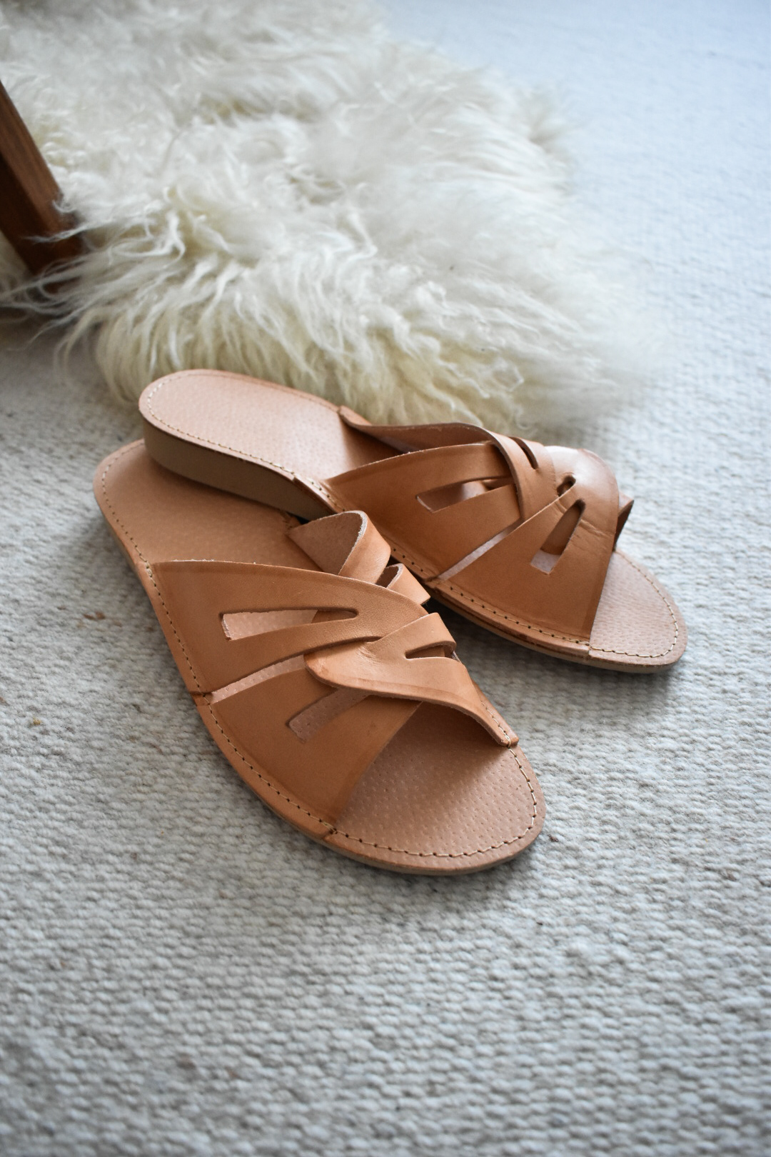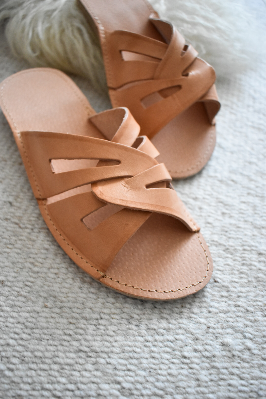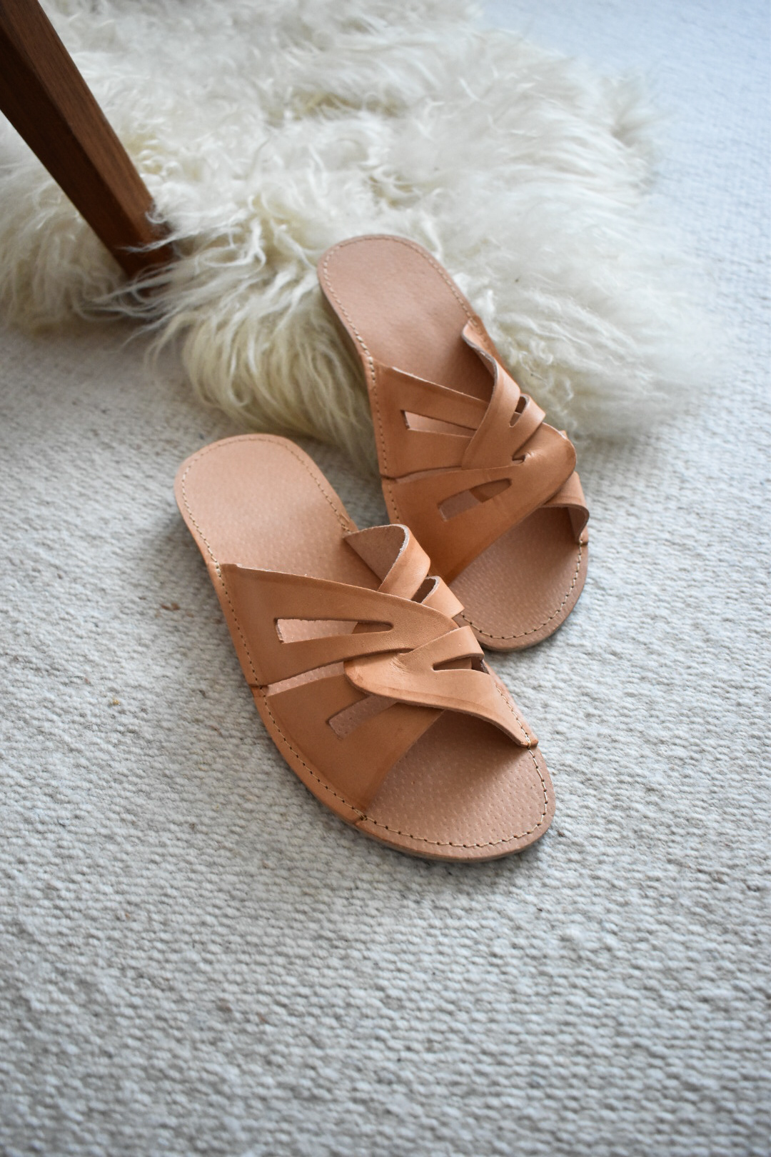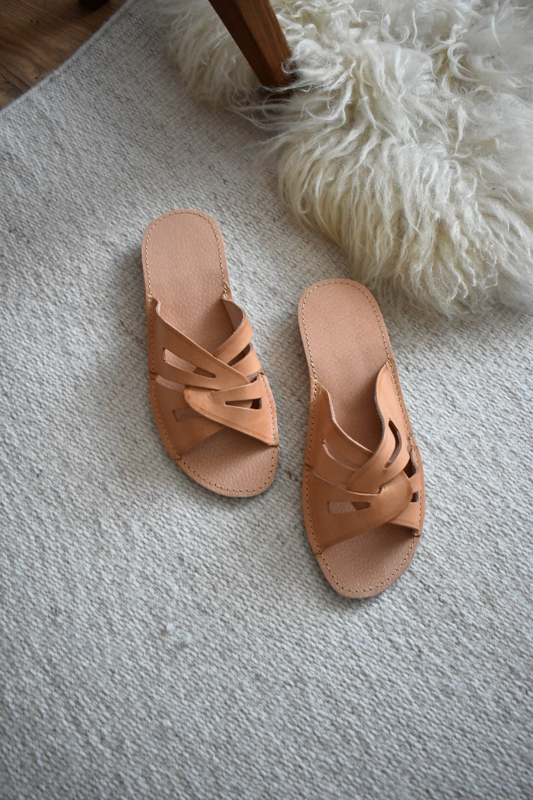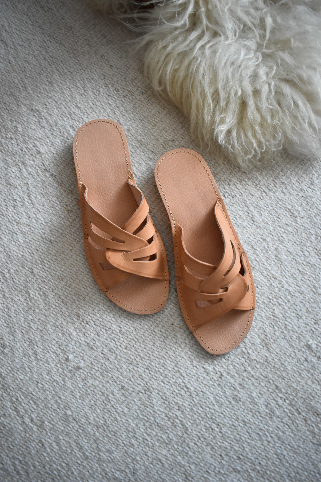 These handcrafted leather slippers combine everyday comfort with a distinctive, sculptural design. Made from high-quality natural leather, they feature elegantly crossed straps that gently hold the foot in place while allowing it to breathe.