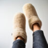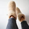 Cosy slippers for chilly feet come in a variety of sizes. The slippers are made from soft 100% wool is both warm and breathable. The sole has rubber grip pads to prevent slipping on hard floors. Perfect for lounging, working from home, or simply relaxing, wool slippers will always deliver warmth without compromising on elegance.