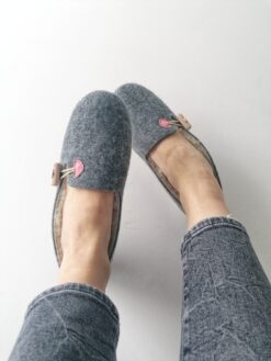 Small leather pieces and sheepskin leftovers are turned into beautiful and one of a kind home shoes.