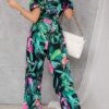 The Tropics Dream floral summer set from our By Mia Collection consisting of a cropped top and high-waisted trousers with a looser leg is a ready way for an interesting summer styling!