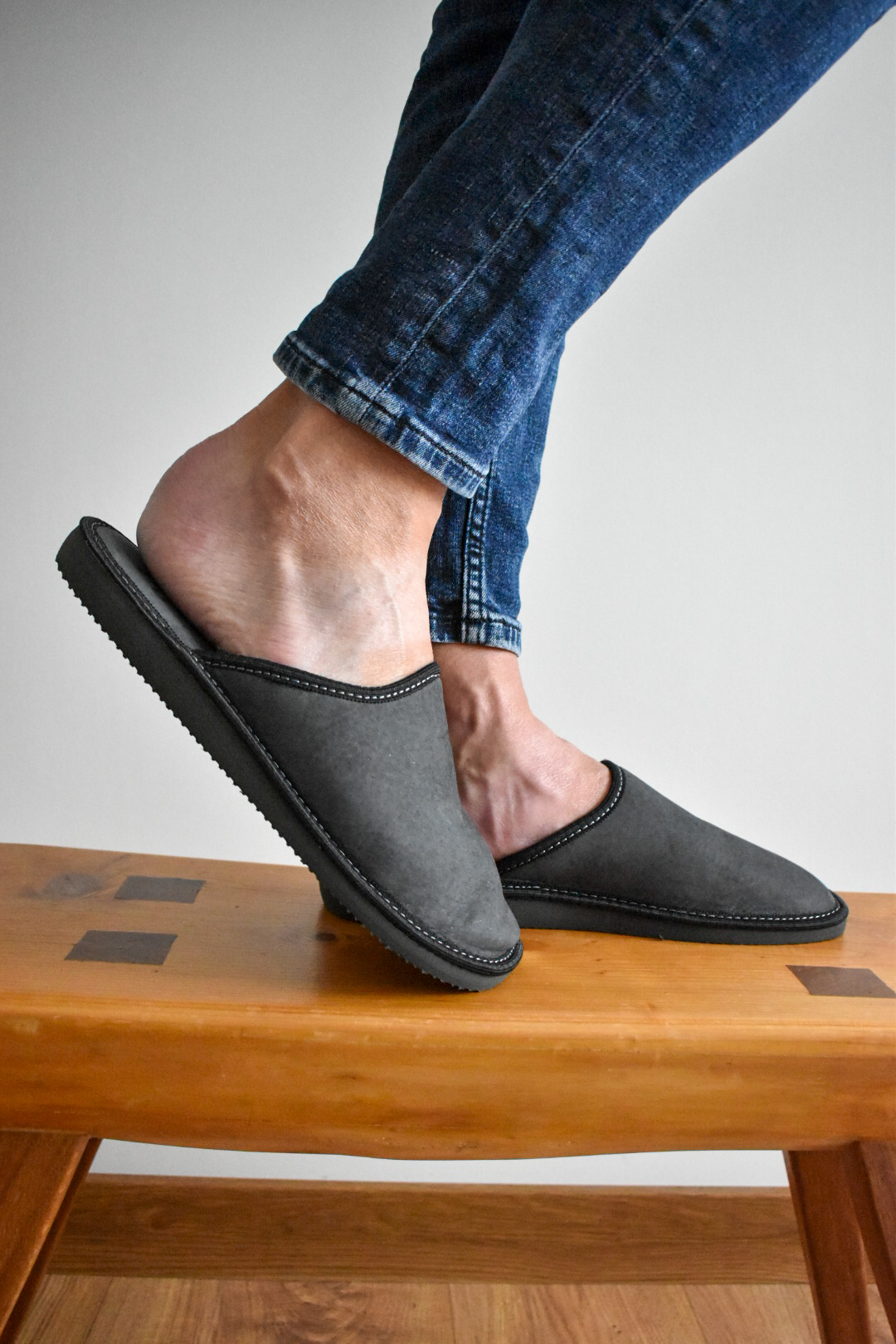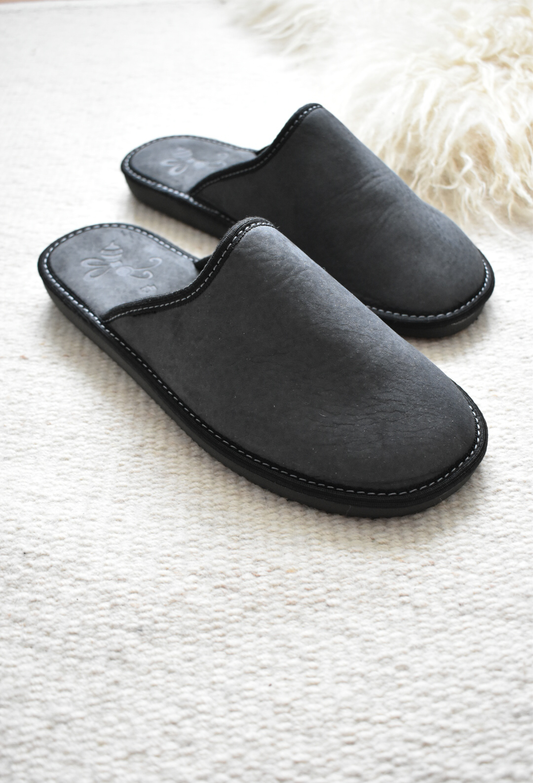 Men’s Leather Slippers – Grey