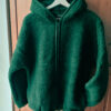 Keep cosy in style with our fabulous green bouclé wool bomber jacket. It’s finished with a warm hooded neck, two pockets and an elasticated hem and cuffs for extra warmth. Perfect for autumn wear through to winter.