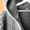 Keep cosy in style with our fabulous green wool bouclé bomber jacket. It’s finished with a warm hooded neck, two pockets and an elasticated hem and cuffs for extra warmth. Perfect for autumn wear through to winter.