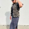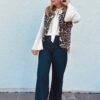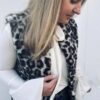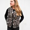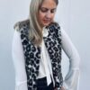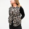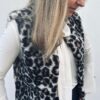 Wrap yourself in timeless elegance with this sherpa wool gilet in leopard print. Crafted from 100% wool in classic design will be perfect addition for layering over light shirts or dresses. The design is simple, curved neckline, side seam pockets and a hidden hook and eye fastening for a clean look.