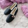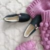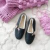 The inner part insulated with wool gives a high sense of comfort. The model is fastened with a toggle, which allows to adjust the instep. The ballerinas are very light and pleasant to the touch. Footwear intended for home use, works great on long cold evenings and more.