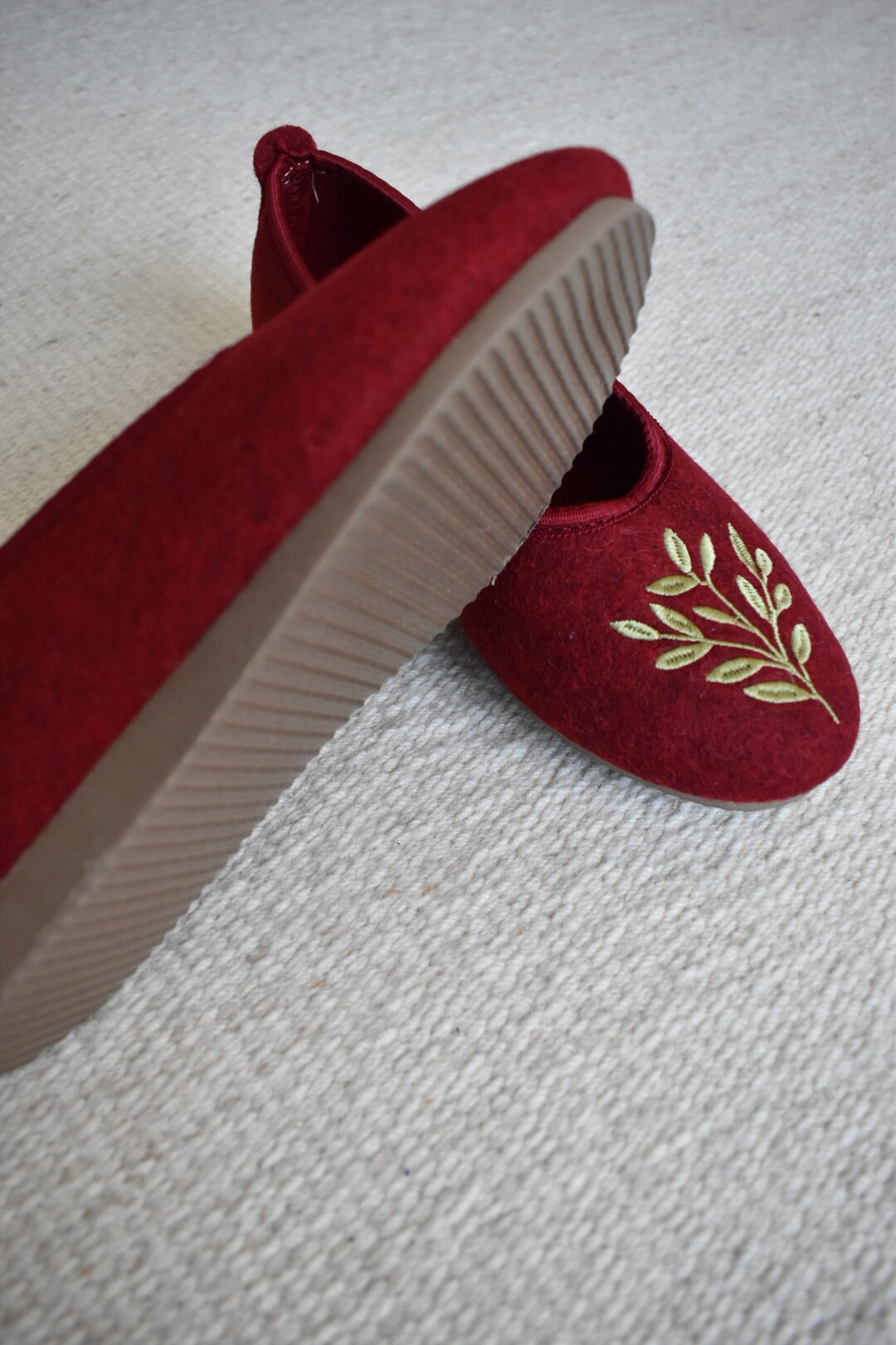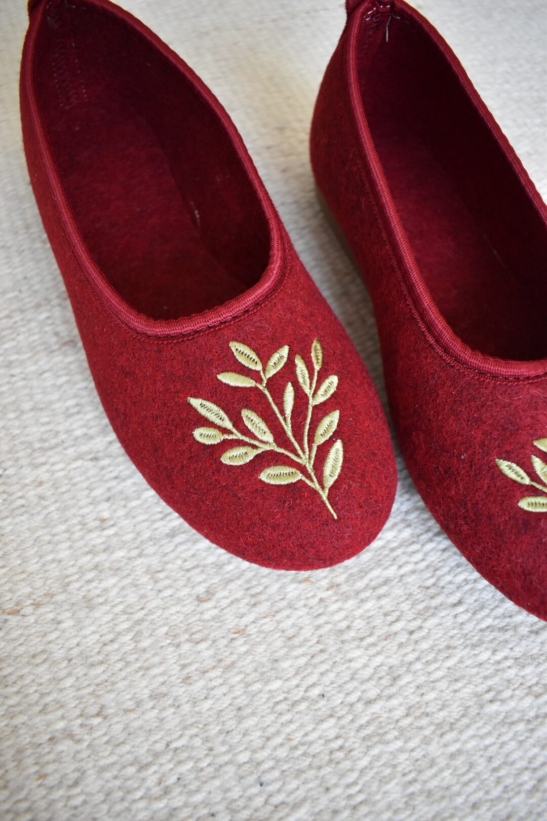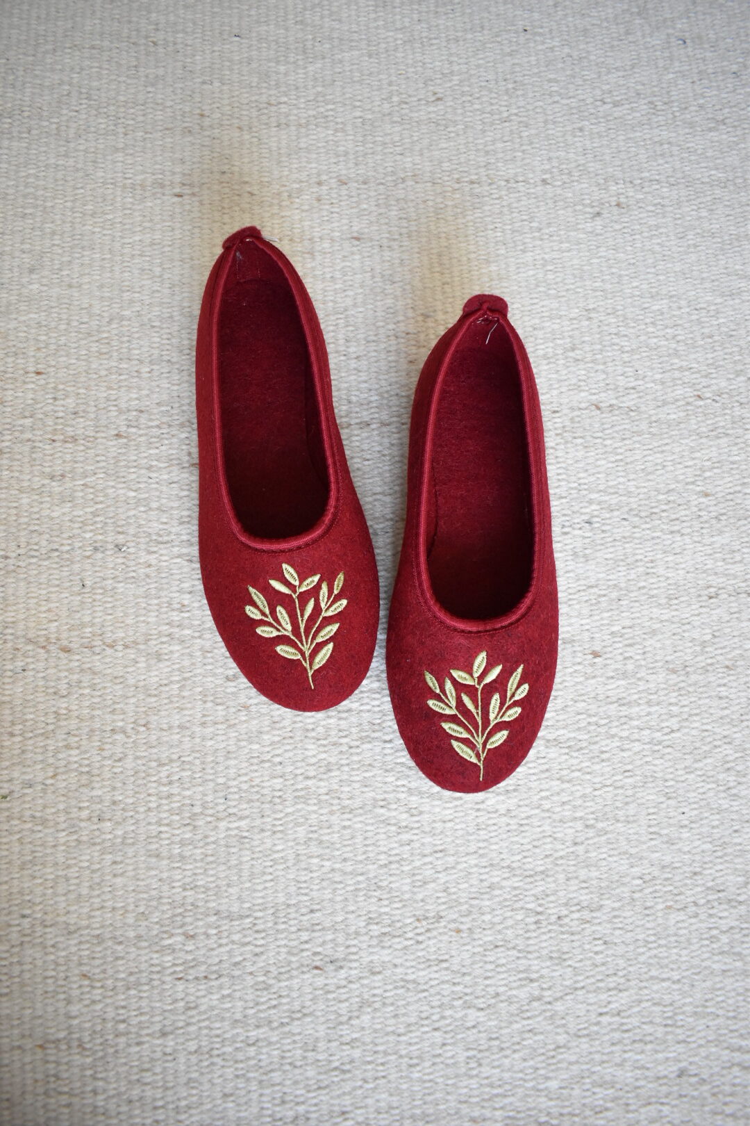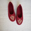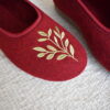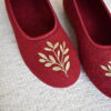 Wool Ballerina Slippers – Burgundy/ Green Leaves