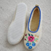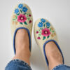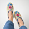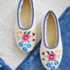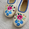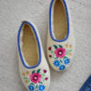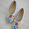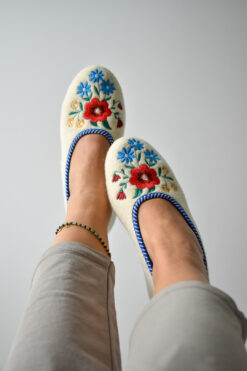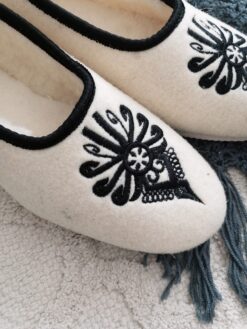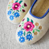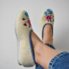 High-quality wool ballerina slippers – stylish, comfortable and light, made with raw, undyed wool felt in a natural cream colour and lined with extra layer soft wool. Decorated with a colourful embroidered flower motif.